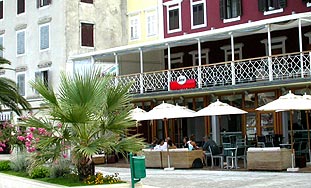 tada, opet vrlo bučno, nastupaju konobari vrlo bučno spremajući terasu.
